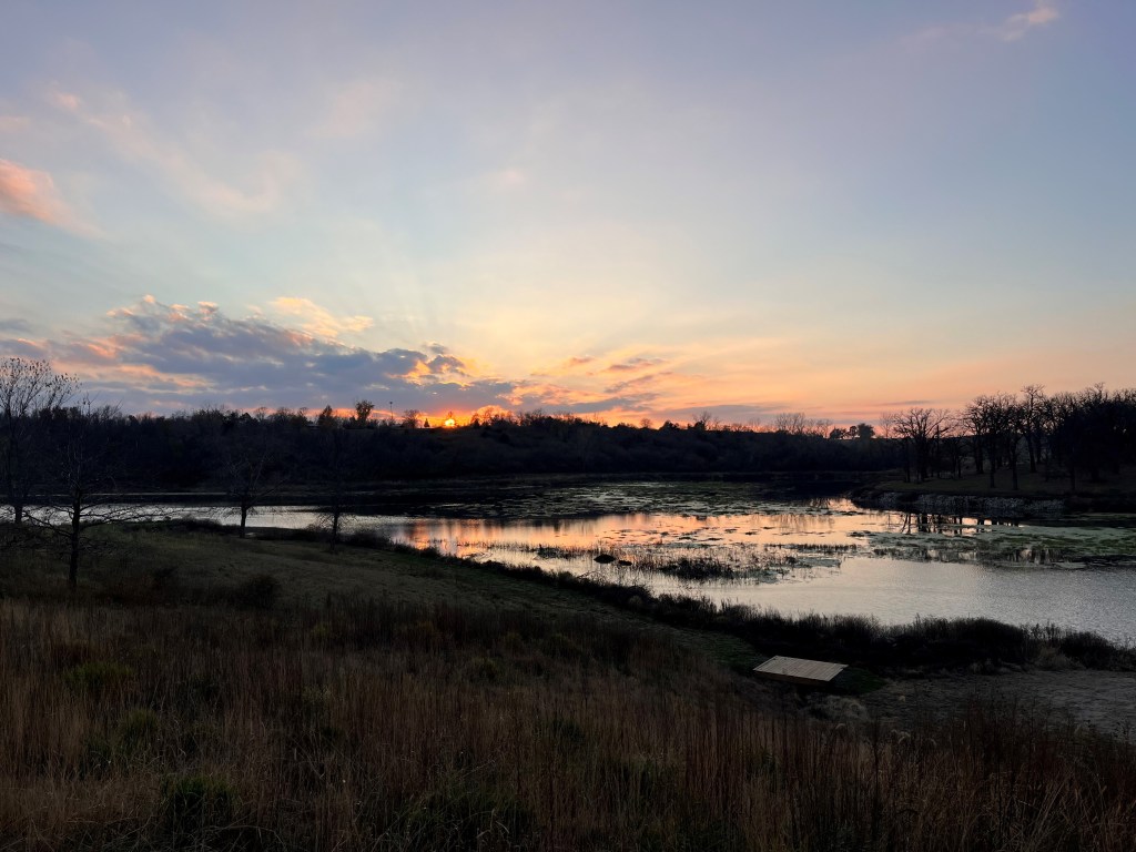 Sunset over Otter Creek at the Otter Creek Lake and Park in central Tama County, a frequent location of the MIWMA Quarterly Meetings.